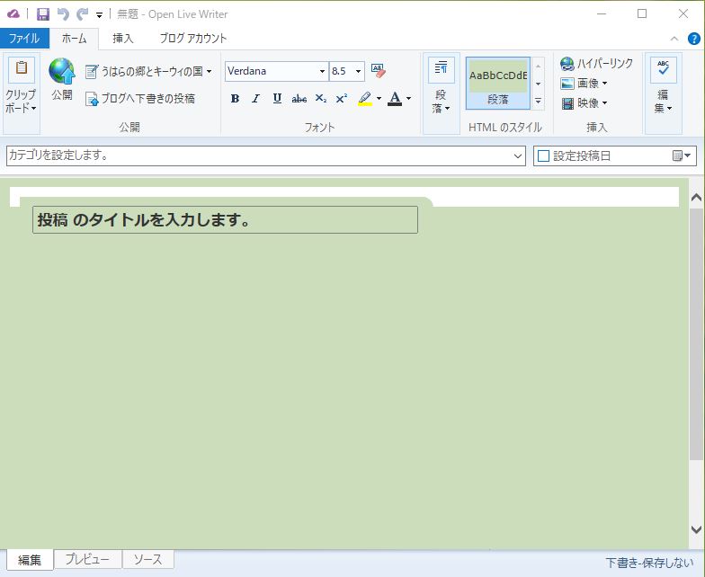 Open Live writerを起動すると下の画面が開く。